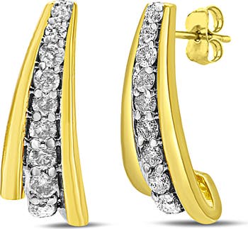 The refined sense of elegance displayed in these diamond huggie earrings is marvelous. Sparkling with a total 0.50 cttw round diamonds with an approximate I-J color and I2-I3 clarity, the diamonds are featured in a graduated ascent of smallest to largest. The earrings are crafted of 10k yellow gold flash plated .925 sterling silver. The push back findings keep these pierced earrings safe and secure on your ears for comfortable wear all day long.