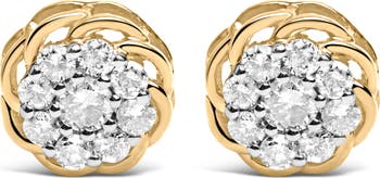 10K Yellow Gold Plated Silver 1/2 Ct Diamond Cluster Stud Earrings