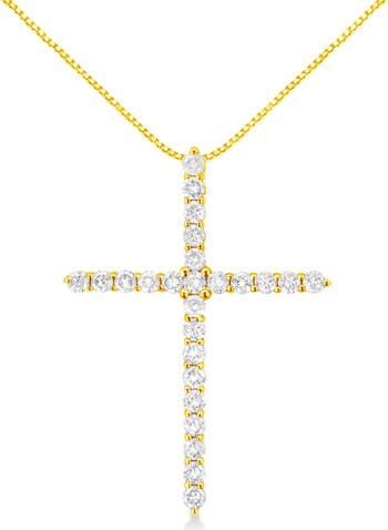 10K Yellow Gold Plated Silver 2.0 Cttw Round Cut Diamond Cross Pendant Necklace