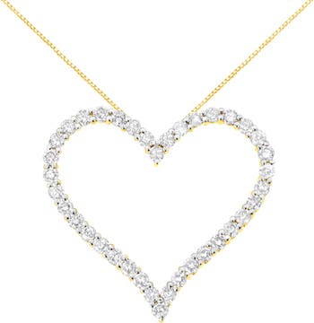 Celebrate someone you love with this stunning diamond open heart pendant necklace. This diamond necklace features a classic open heart made up of prong set round, brilliant cut diamonds set in genuine 10K yellow gold plated sterling silver. The stunning pendant comes with a matching box chain necklace with a spring ring clasp. The contemporary yet classic 18" box chain complements any neckline beautifully. This authentic design is crafted of real 92.5% sterling silver that has been electro-coated with genuine 10K gold, ensuring it will keep a tarnish-free shine for years to come. Both pretty and personal, this romantic diamond heart pendant necklace is sure to radiate romance. This open heart design features 38 sparkling diamonds. This sweet necklace makes a perfect gift to show someone you care, or as a way to remember someone close to your heart. It's a classic and feminine piece she'll want to show off every day.