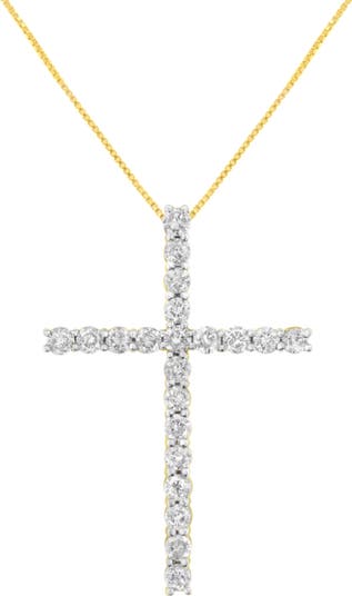 10K Yellow Gold Plated Silver 4.0 Cttw Diamond Cross Pendant Necklace