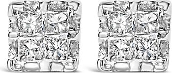 10k Yellow Gold Princess Diamond Quad Stud Earrings
