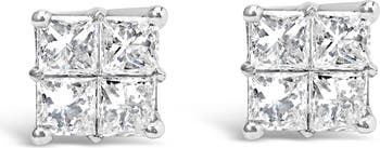 Fitted with a secure push back mechanism these striking square 10k white gold studs are the perfect accent for any occasion. Crafted with 1/4ct of brilliant princess cut diamonds in an invisible setting that perfectly catch the light and make them sparkle.