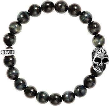 10mm Blue Tiger Eye Bracelet with Day of the Dead Skull
