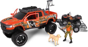 - OFFICIALLY LICENSED: This high quality, multi-vehicle playset with 1:18 scale freewheel truck, trailer, ATV, and accessories is licensed by RealTree, RAM and Polaris. Iconic Realtree camouflage ties the whole set together.