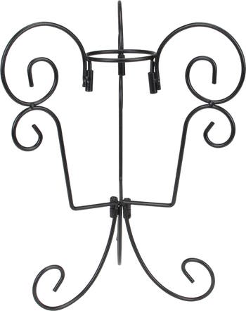 Thought to attract fairies and magical beings, gazing balls have been making gardens beautiful since the 13th century. This lovely stand is the perfect way to display your colorful gazing balls. This versatile piece will match any garden decor magnifying the overall ambiance. Product Features: Outdoor patio garden gazing ball stand Swirled design on legs with an opening to hold your gazing ball Three sturdy legs are sure to keep your gazing balls secure Black finish goes with any decor String lights for an added touch of flair Recommended for both indoor and outdoor use Dimensions: 11.25"H x 8.25"W x 8"D Opening for gazing ball: 2.5" diameter Material(s): metal Note: gazing ball not included