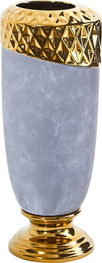 Love your new plant but not the planter? It's your lucky day with this Stoneware Oval Vase with gold trimmings (Set of 1). DIY your own faux-bulous arrangement easily, effortlessly and confidently by adding your own finishing touches. If you're into Hollywood glam or mid-century modern, you'll love this ceramic vase's gold trimmings against the stoneware base. Standing 11.5" high, you can set in a tabletop against a walled mirror for a chic look. No drainage holes.