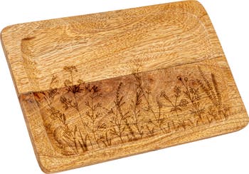 - This natural mango wood tray with laser-etched botanicals brings warmth and organic beauty to rustic, farmhouse, or bohemian-inspired interiors