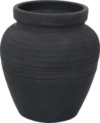 Elevate your home decor with our stunning 11-inch black terracotta vase. This artisan-crafted piece is beautifully handcrafted in India, designed to bring sophistication and elegance to any room. The striking black finish highlights the natural texture of the terracotta, making it a versatile decor element that complements every type of aesthetic.