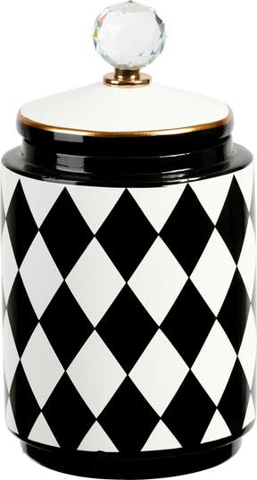 The Mark Roberts Harlequin Balck & White Urn with Lid stands 11 inches tall and features a striking harlequin pattern accented with elegant detailing. Its decorative lid adds a refined, classical touch while making it a versatile accent for shelves, mantels, or tabletops. Crafted with Mark Roberts’ signature style, this urn brings sophistication and visual interest to any décor.