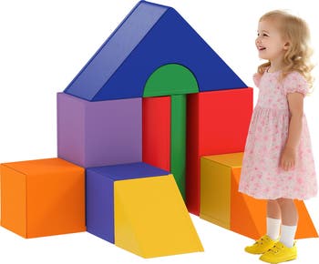 - Mix, Match & Stack for Endless Fun: With 11 colorful foam blocks—including triangles, rectangles, half-cylinders and squares—kids can stack, climb, crawl and build their own obstacle course.