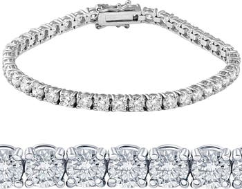 This classic women's bracelet features round brilliant cut diamonds. All diamonds are prong set in a 14k white gold with. The bracelet features a hinge clast to easily get on and off.