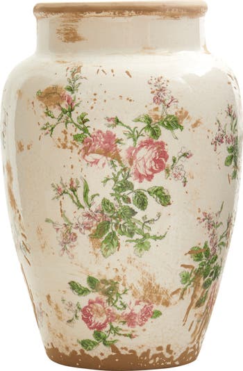 Arrange your faux-bulous flowers in this floral design urn (set of 1). The vintage ceramic planter has a homey feel with its palette of pinkish flowers against a rugged backdrop. DIY and have fun mix-matching for a country chic look that delivers that fresh farm to home style. No drainage holes and indoor use only.