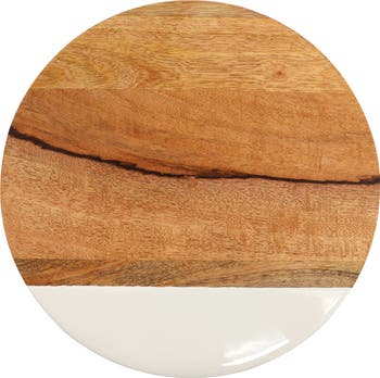 The Gibson Home 12 Inch Duo Tone Wood Serving Board is the perfect addition to your kitchen or dining space, combining both elegance and functionality. With its ideal 12-inch size, this serving board offers ample space for presenting appetizers, cheeses, fruits, and more. The board features a unique duo-tone design, with a rich brown wood surface paired with a glossy enameled white section, creating a modern yet rustic aesthetic that complements any occasion.Crafted from high-quality natural wood, the board brings a timeless, rustic charm while maintaining a polished look. The non-slip bottom pads ensure the board stays securely in place during use, offering stability as you serve. Cleaning is simple-just wipe the board with a damp cloth to maintain its beauty and durability. Whether you're hosting a dinner party or a casual gathering, the Gibson Home 12 Inch Duo Tone Wood Serving Board is both a stylish and practical choice to elevate your serving experience.