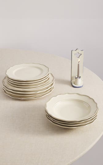 A collection for recreating Sunday lunch from summers in Provence or starting a tradition of fresh pasta night. The hand-painted Jane 12 Piece Set with Pasta bowl is an essentials-only set featuring our favorite pasta bowl that can also be used for soup. Dinner Plate: 10.5" x 10.5" x 0.75", Side Plate: 9" x 9" x 0.75", Pasta Bowl: 9.2" x 9.2" x 1.73".