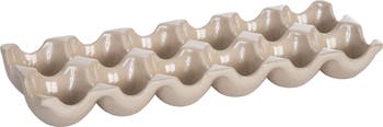 Serve with style at your next spring gathering with the 12-Section Stoneware Egg Serving Platter, an 11.75-inch stoneware tray featuring twelve individual egg-shaped indentations arranged in two rows of six. The elongated rectangular form with a scalloped, undulating top surface gives the platter a sculptural, organic quality that reads as an attractive tabletop accent even when empty. Crafted from stoneware with a smooth, glossy glaze in a warm taupe tone, this platter has a solid, quality feel and a clean, neutral surface that suits a wide range of spring, Easter, and everyday entertaining presentations. Its minimal, undecorated design allows it to blend naturally with a variety of table settings, from farmhouse and cottage to contemporary and transitional. Whether used to serve deviled eggs at a spring party or displayed as a decorative piece on a coffee table, end table, or sideboard between uses, this platter delivers both function and form. It also makes a thoughtful and practical gift for anyone who loves understated, well-crafted home entertaining accessories.