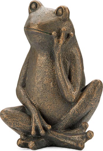 This sitting frog statue is a charming addition to any garden or outdoor space. Crafted from durable resin with a bronze finish, it features a frog in a sitting pose, with its hand supporting the face. The bronze coating gives the statue a rich, metallic sheen that mimics the look of real bronze, adding a touch of elegance and timelessness.