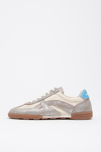 13 16 Indoor sneaker with a suede and nylon upper. Features a scalloped design, logo tongue, leather back with contrast logo print, logo sole, and a custom logo-print insole.