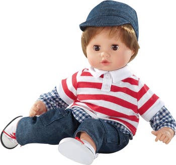 - Gotz 13" Muffin soft body doll has rooted short brown hair and brown open/close eyes with long lashes. Finally, a nice quality boy play doll with hair!.