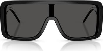 Bold logo lettering stands out at the temples of these striking shield sunglasses made in Italy and fitted with tinted lenses that offer full-coverage UV protection.