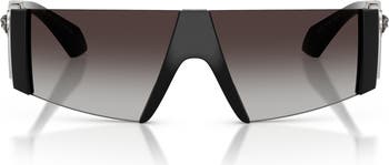 Striking Medusa-head hardware at the temples adds a signature luxurious touch to these rimless rectangular sunglasses crafted in Italy.