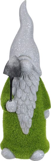 Gnomes are best known for guarding Earthly treasures and good luck, making them perfect for protecting your garden! This adorable gardener will add a bit of whimsical fun to your outdoor space. Product Features: Green and gray garden gnome statue Covered in faux green moss Gray with white speckles Recommended for indoor or outdoor use Dimensions: 13.5"H x 4.5"W x 4.5"D Material(s): polyresin/faux moss