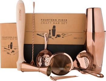 Beyond the basics: This mixology set has everything you need to take you from your first cocktail to your 100th bartending shift. Made with the best Stainless Steel 304, it'll last a lifetime – at home or behind the busiest craft cocktail bar. This cocktail set is made from high quality, food-grade stainless steel 304 and natural beech hardwood.· Our 14-piece bartender kit features a beautiful polished finish on all metal components and smooth sanded finish on the hardwood muddler.· Welded to Last: All welds are reinforced - These tools aren't gonna rust and fall apart.· This bar tool set includes a Boston shaker set, three cocktail strainers, Japanese jigger, hardwood muddler, bar spoon, and six cocktail picks. Get a full cocktail kit with 14 of our best-selling and top-rated bar tools, all in one gorgeous and giftable box.