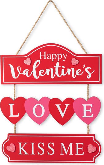 This 14"H Valentine's Wooden LOVE Word Sign Door Hanger is a charming holiday decoration. Crafted from durable MDF wood, the door hanger features a simple yet heartfelt design that beautifully captures the essence of Valentine's Day.