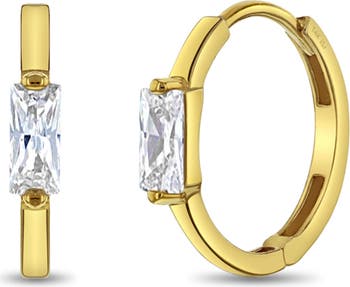 14k Baguette Cut Huggie Earrings