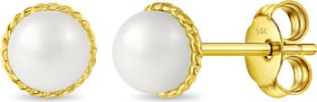In Season Jewelry 14k Braided Edge Pearl Girl Earrings, Main, color, White