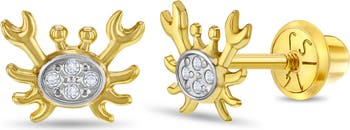 Add a splash to your little one’s jewelry collection with these adorable crab earrings. Crafted from 14K yellow gold, these playful earrings feature a sparkling body covered in clear cubic zirconia stones, creating a delightful shimmer. Designed with comfort and security in mind, they are lightweight and secured with 14K yellow gold screw-back closures for a snug and reliable fit. For beach lovers or anyone who adores unique accessories, these cute crab earrings make a fun and stylish gift for any little girl. A gift box is included with purchase.