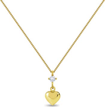 A special glimmer of sparkle, this girls' necklace features a polished heart pendant crafted in radiant 14k yellow gold. At the top of the heart sits an adorable clear cubic zirconia stone, adding just the right touch of shimmer. The necklace measures 15 inches with an additional 1-inch extender, offering a comfortable and adjustable fit as she grows. A lovely piece that's lovely for everyday wear or gifting on special occasions. Gift box included with purchase.