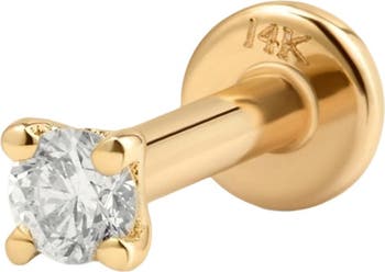 14k Diamond Prong-Set Stud Earring (Flat Back) - Single
