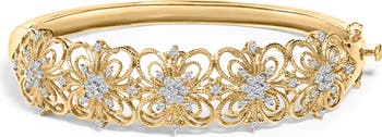 14K Gold 1.00 Cttw Diamond Vintage Inspired Floral Bangle Bracelet