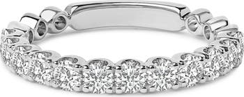 Experience the unending circle of love with this exquisitely crafted wedding band, forged from radiant 14k gold and enhanced with a lustrous rhodium-plated finish to evoke timeless elegance. This band proudly parades a constellation of 14 natural, round-cut diamonds, each meticulously set in a secure 4-prong setting that reflects every flicker of light in a dazzling dance of brilliance. These stunning gems, totaling a full carat, are graded I-J for color and SI2-I1 for clarity, ensuring a shimmer that captivates the heart with its pure and fiery glow. It offers a grand celebration of matrimonial promise, making it not just a piece of jewelry but a token of your everlasting love.