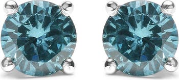 14K Gold 1/2 Ct Aqua Blue Diamond Stud Earrings