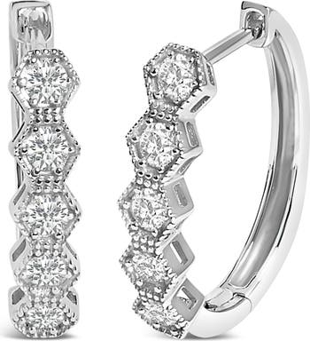 Haus of Brilliance 14K Gold 1/2 Ct Diamond Earring Zig-Zagging Geometric Hoop Earrings, Alternate, color, White