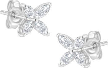 14K Gold 1/2 Ct Marquise Diamond 8 Stone Floral Leaf Stud Earrings