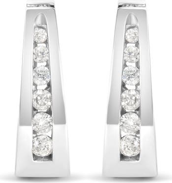 14K Gold 1/4 Cttw Channel-Set Brilliant Round-Cut Diamond Hoop Earrings