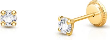 14K Gold 3mm Genuine Diamond Studs Screw Back Earrings