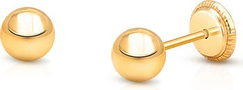 A petite round stud is the perfect everyday earring for your girl. Made from 14K gold with secure screw backs, these sweet earrings are an exceptional gift.