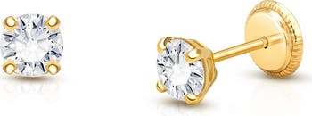 14K Gold 4mm Genuine Diamond Studs Screw Back Earrings