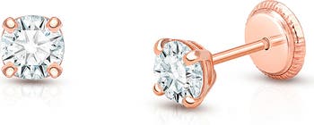 Timeless Diamonlux™ CZ stud earrings in 14K gold with secure screw backs. Hypoallergenic, elegant, and perfect with every outfit.