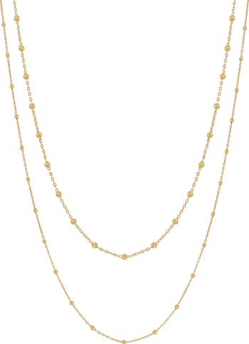 This Italian-made two-strand station necklace handcrafted from gleaming 14-karat gold is the perfect finishing touch to your look.