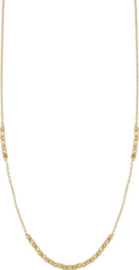 Rounded and cubed beads lend geometric intricateness to this delicate chain necklace handcrafted in Italy from gleaming 14-karat gold.