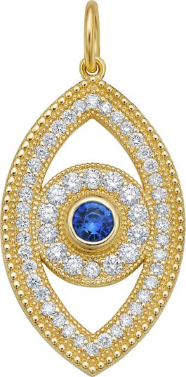 A beautiful token of protection — gold-rimmed, sapphire-centered, and diamond-kissed