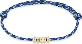 A handful of polished 14-karat-gold beads playfully refine a paracord bracelet that adjusts to fit you perfectly.