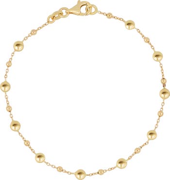 Part of our online trunk show, this style is available for a limited time From July 12 through August 3. Glinting beads are stationed along this dainty chain bracelet handcrafted from 14-karat gold to make you glow.
