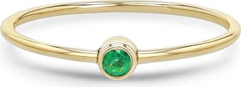 A bezel-set birthstone glints gently from a simple, stackable setting handcrafted in 14-karat gold.