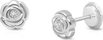 14K Gold Blushing Rose Studs Screw Back Earrings